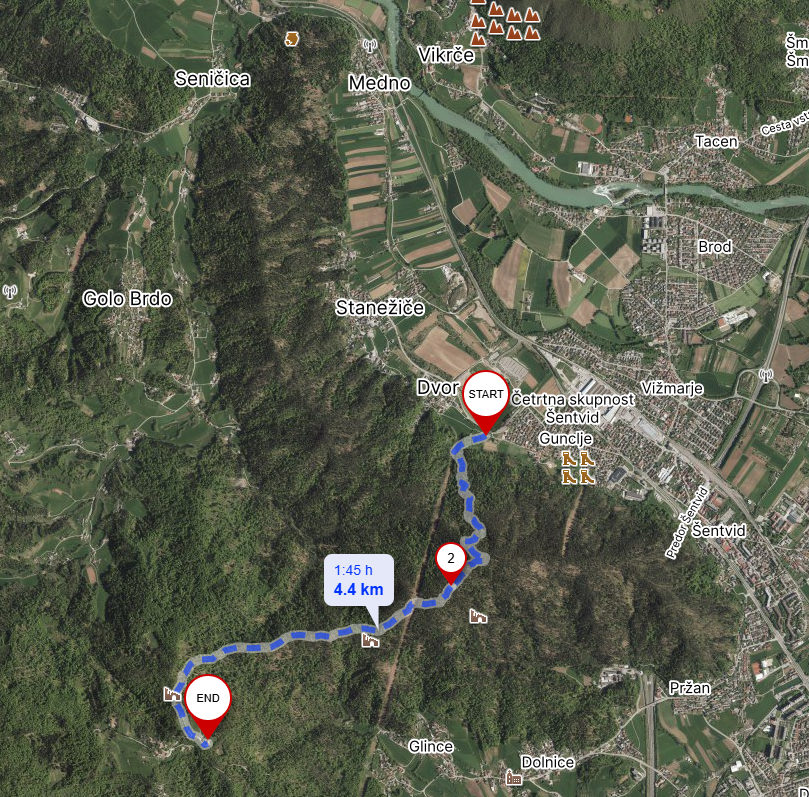 Pot bo potekala po gozdnih poteh in kolovozih vzdolž razgibanega grebena Šentviškega hriba, ki se razteza med Pržanom in Mednim. Območje ponuja številne poti in prijetno naravno okolje, hkrati pa ostaja nekoliko manj obiskano v primerjavi z bližnjo Šmarno goro in Rašico.
